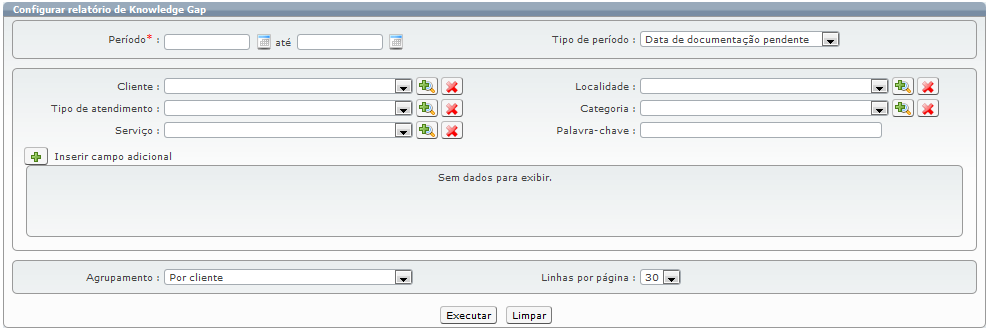 Ao acessar a opção "Knowledge Gap" será apresentada a tela de configuração deste relatório: