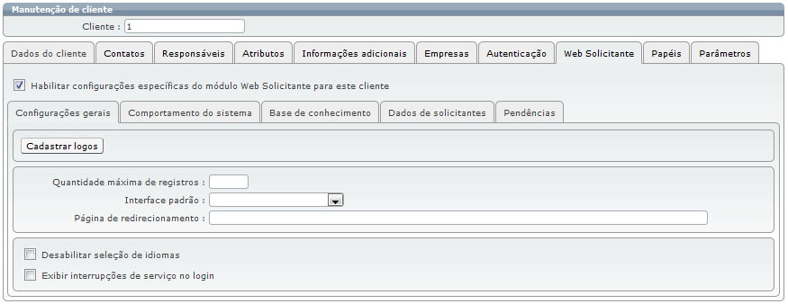<< <%SKIN-STRTRANS-SYNTOC%> >> Navegação: ATENDENTE > Recursos de atendimento > Menu "Clientes" > Cadastrando novos clientes > Guia "Web Solicitante" > Subguia "Configurações Gerais" |