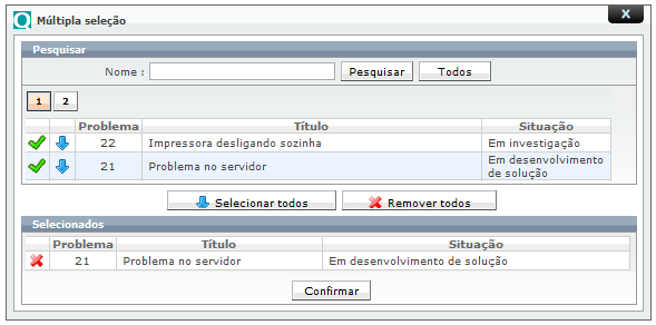 << <%SKIN-STRTRANS-SYNTOC%> >> Navegação: ATENDENTE > Requisições de serviço > Operações sobre requisições de serviço > Guia “Relações” > Subguia “Problemas” |