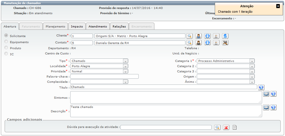 Toda vez que situações como às que acabamos de mencionar ocorrerem no mesmo chamado, o número de iterações será aumentado e sinalizado, conforme imagem abaixo: