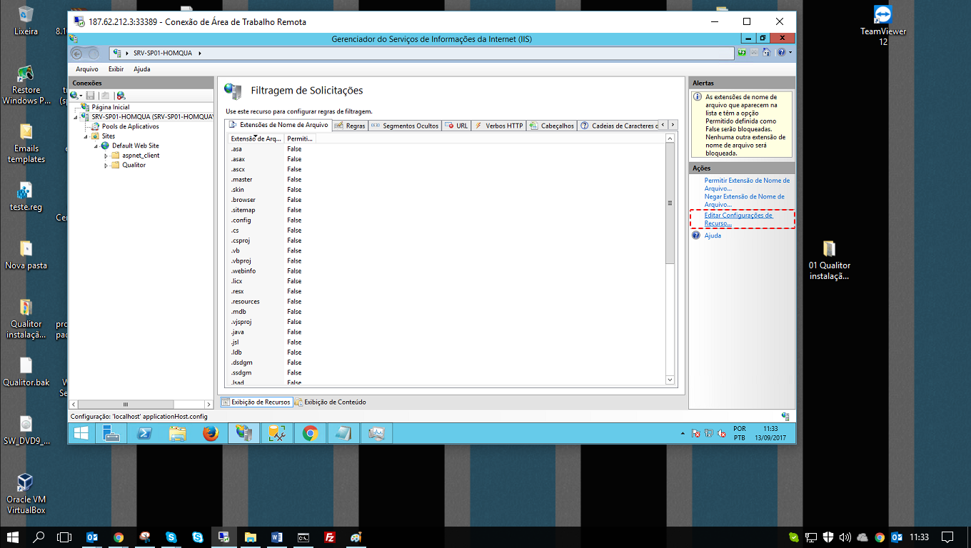 1.Vá até o IIS e clique duas vezes em "Filtragem de Solicitações" para fazer a configuração:
