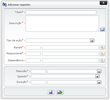 Nesta tela deve-se preencher as informações solicitadas e depois clicar no botão "Salvar" para adicionar a ação ao modelo de mudança.
