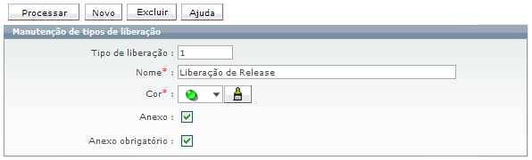 Para registrar um tipo de liberação, basta definir os seguintes campos: