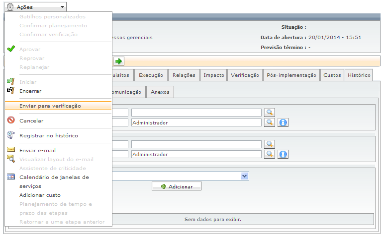 A solicitação deve ser encaminhada para verificação, através do botão “Ações / Enviar para verificação”.