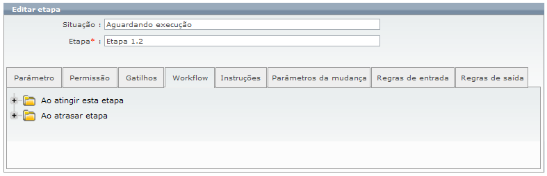 Na guia "Workflow" é definida a configuração de mensageria da mudança para a etapa em questão: