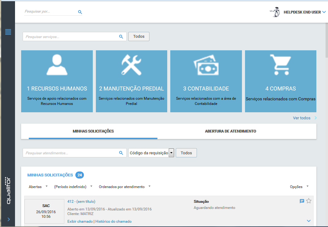 Essa tela poderá ter diferentes aspectos, de acordo com a configuração do Portal, feita pelo administrador do Qualitor.