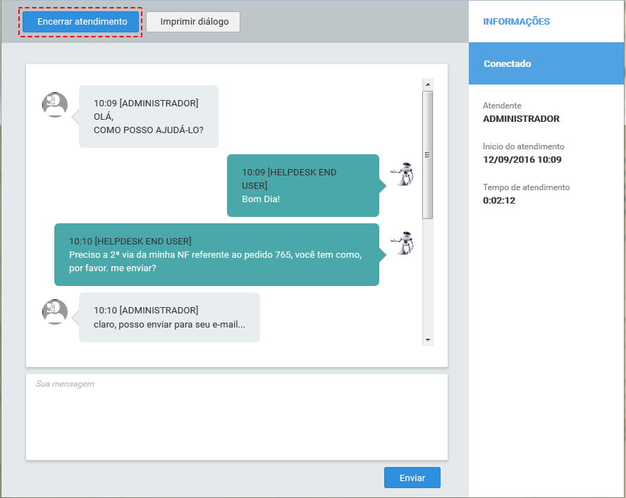 Ao clicar no botão “Fechar” será exibida uma mensagem para que o usuário final confirme o encerramento do atendimento: