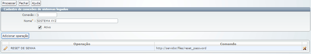 Acessível em: Avançado -> Conexões -> Conexões à sistemas legados