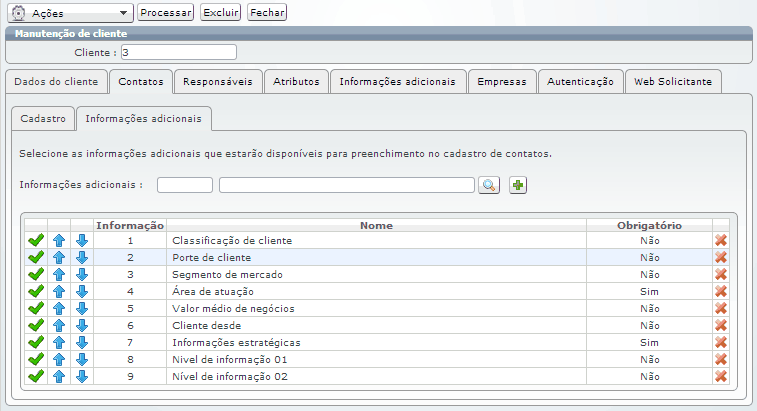 No cadastro de clientes e contatos é possível associar informações adicionais. Estas informações adicionais permitem que os dados sejam mais detalhados de acordo com a necessidade dos clientes.