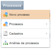 A construção de um processo é realizada através da ferramenta disponível no menu "Processos / Novo processo":