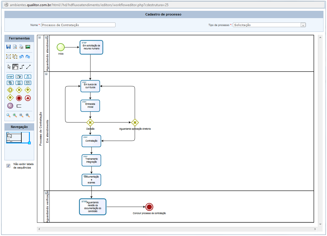 Visualizar e editar processo gráfico - Este ícone possibilita a visualização e/ou a edição do processo gráfico, conforme exemplo abaixo: