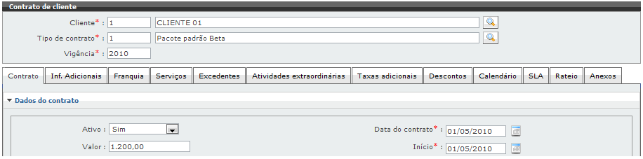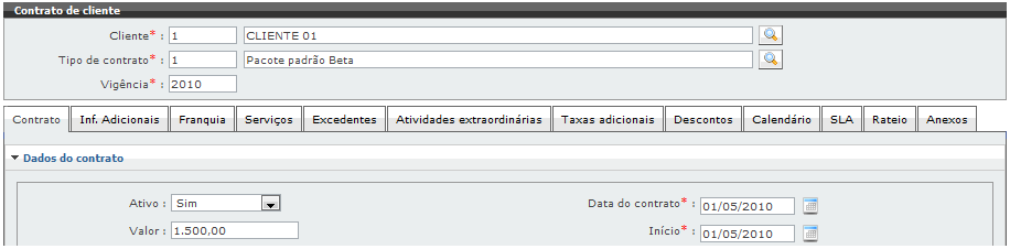 O contrato do CLIENTE 01 sofre uma alteração: o valor de R$ 1200, passará a ser R$ 1500, conforme as imagens a seguir: