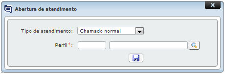 Nesta tela o atendente deverá selecionar o tipo de chamado, se será um “Chamado normal", “Chamado tela única”, "Incidente telea única", "Incidente normal" ou "Requisição de serviço" e também selecionar um perfil para abertura desta requisição, conforme a imagem abaixo: