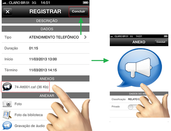 << <%SKIN-STRTRANS-SYNTOC%> >> Navegação: QMOBILE > Acessando Chamados > Visualização > Acessando Chamados - “Menu de Contexto” > Registrar > Gravação de Áudio > Gravação de Áudio - Armazenamento e Execução |