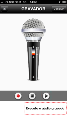 Antes de realizar a confirmação do áudio gravado, pode-se realizar a execução do mesmo a fim de que se escute aquilo que foi gravado.