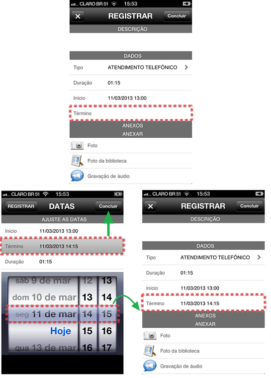 Navegação: QMOBILE > Acessando Chamados > Visualização > Acessando Chamados - “Menu de Contexto” > Registrar >