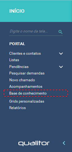 Base de conhecimento é um repositório de informações estruturadas a serem utilizadas como apoio para o processo de atendimento como um todo. Estas informações são armazenadas na forma de artigos em pastas de armazenamento que podem ser definidas em até 6 níveis hierárquicos.