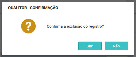 Nesta tela é possível salvar as alterações com o mesmo nome deste respectivo perfil ou então alterar também o nome do perfil. Depois, para salvar as alterações clique no botão Processar e o Qualitor exibe a tela de confirmação da alteração do registro: