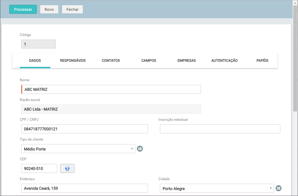 Depois de visualizar e fazer as edições no cadastro do cliente é preciso salvá-las através do botão "Processar".