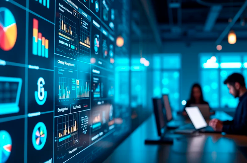 Dashboards mostram desempenho, capacidade e gargalos — permitindo decisões rápidas.